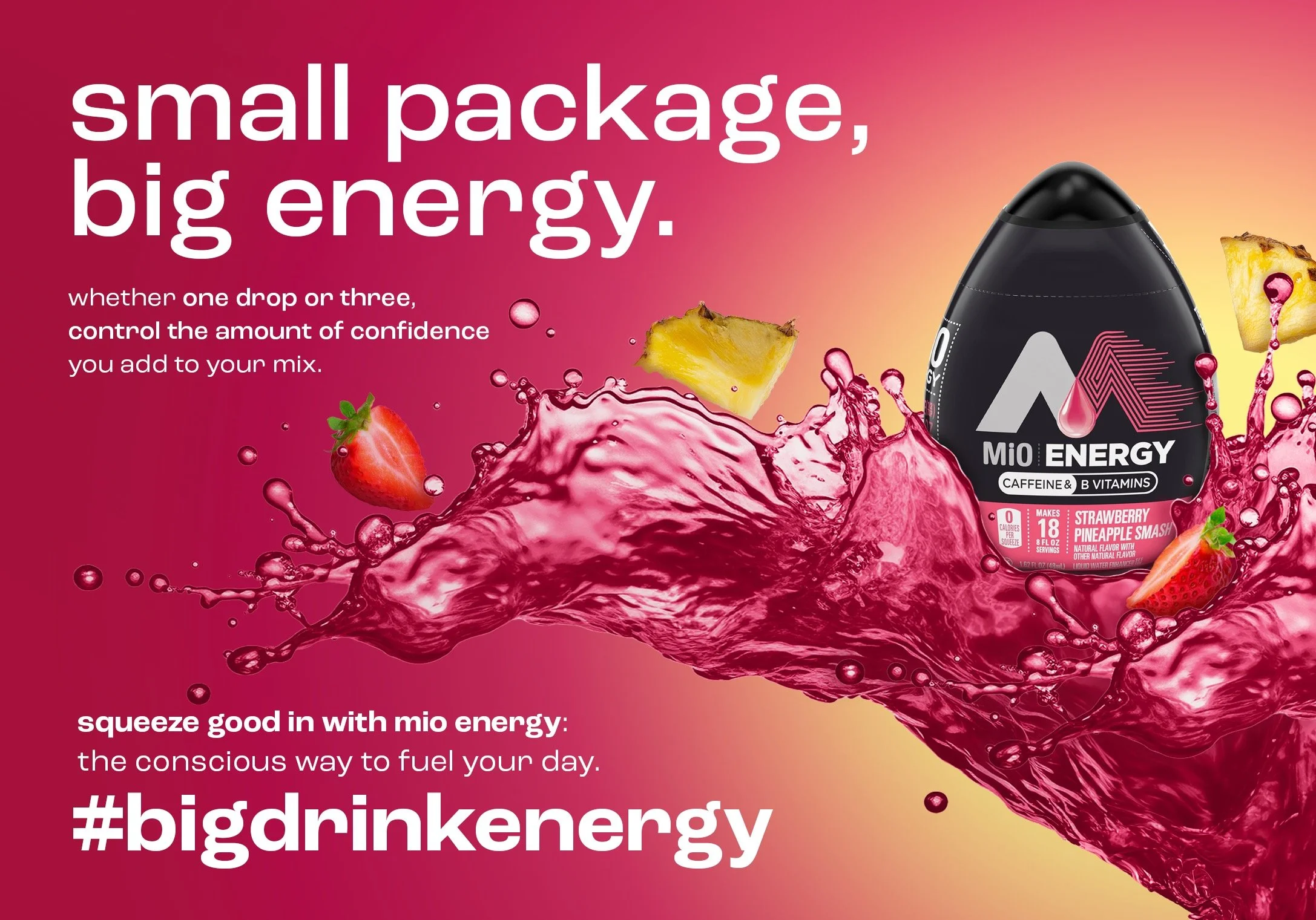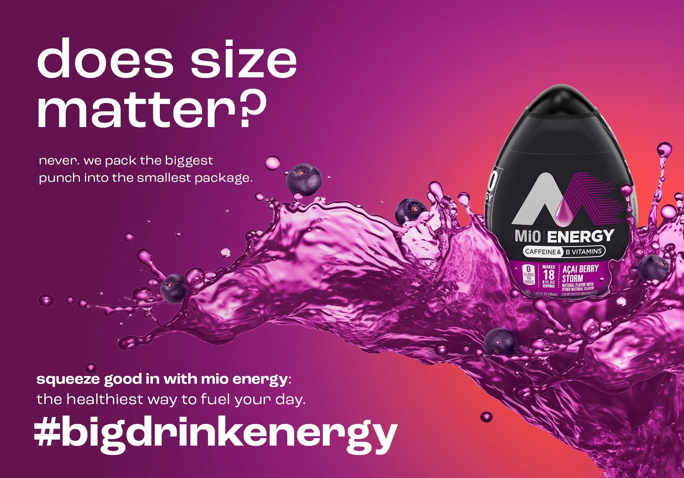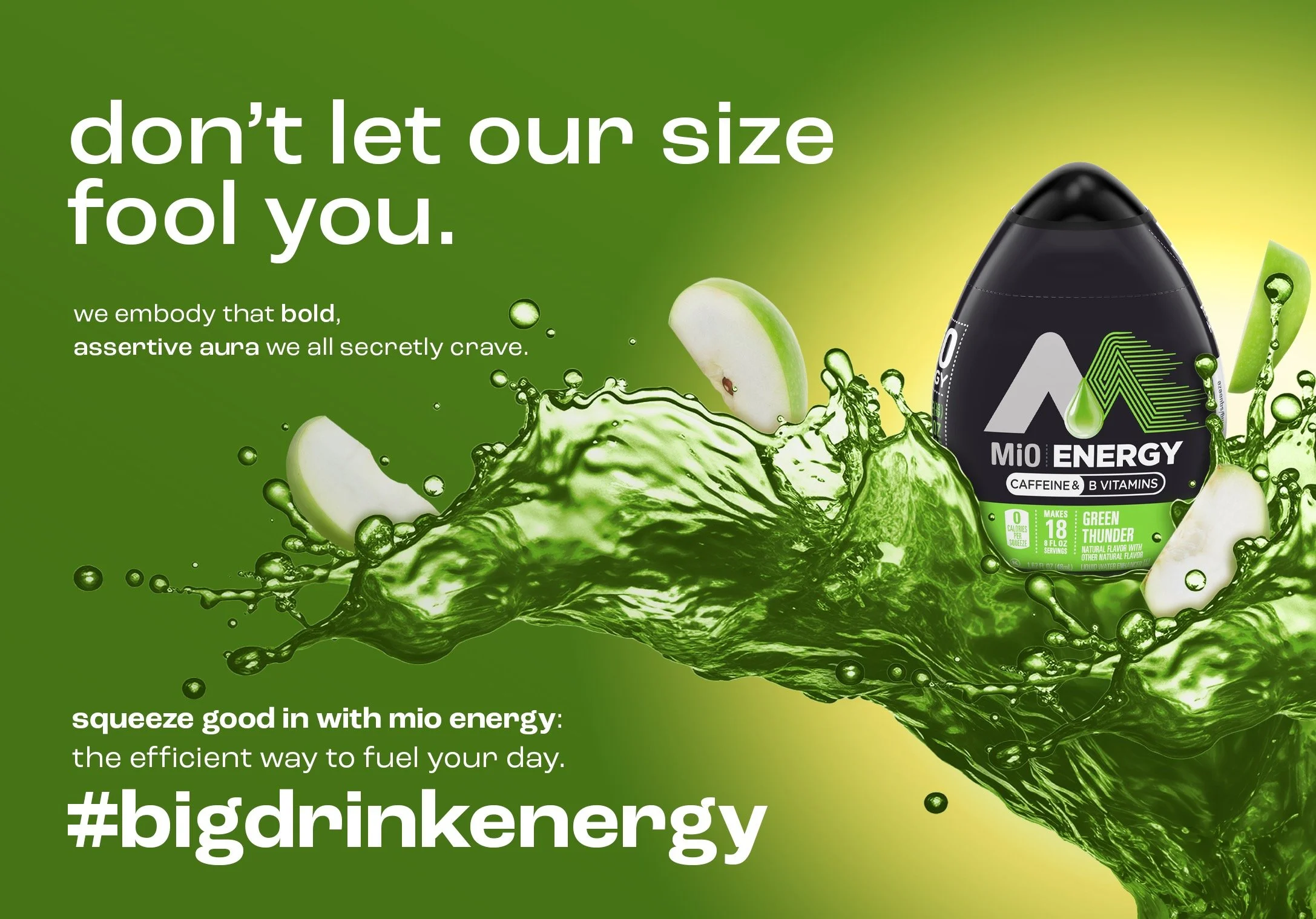 We created a campaign showcasing MiO’s unique ability to energize while being pocket-sized, embodying that #BigDrinkEnergy (aka “BDE”). We let the copy exude the distinctive swagger that sets MiO apart, infusing confidence and charisma into your drink with just a few drops.